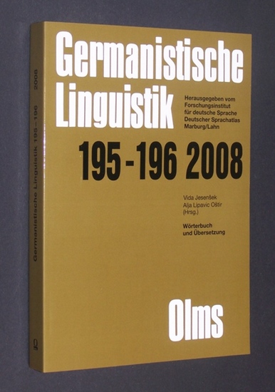 Wörterbuch und Übersetzung. 4. Internationales Kolloquium zur Lexikographie und Wörterbuchforschung Universität Maribor 20. bis 22. Oktober 2006. [Herausgegeben von Vida Jesensek, Alja Lipavic Ostir]. (= Germanistische Linguistik. Herausgegeben vom Forschungsinstitut für deutsche Sprache, Deutscher Sprachatlas, Marburg/Lahn, 195-196-2008). Hildesheim, Zürich & New York: Georg Olms Verlag 2008. XIV, 404 Seiten. 8° (17,5 - 22,5 cm). Orig.-Broschur. [Softcover / Paperback]. Insgesamt sauberes und sehr gutes Exemplar. ISBN: 9783487138480.