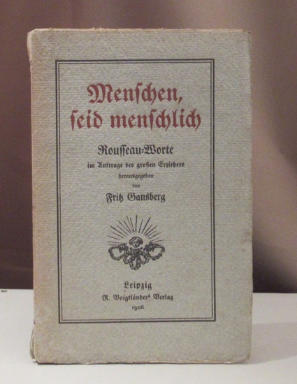 Menschen, seid menschlich. Rousseau-Worte. Leipzig, Voigtländer 1906. 1906. 124 S. Orig.-Karton. Erste Ausgabe. - Einband leicht fleckig u. lichtrandig, Rücken leicht eingerissen, Besitzvermerk auf Titelblatt. Breitrandiges unbeschnittenes Exemplar.