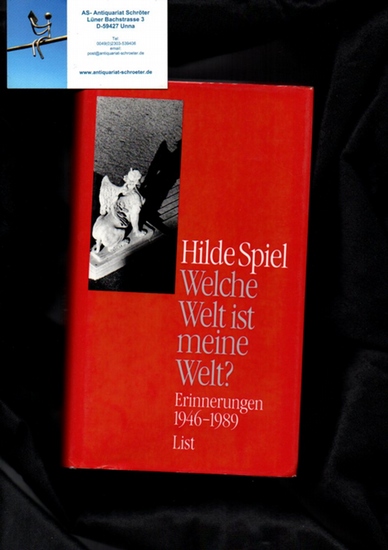 Welche Welt ist meine Welt? Erinnerungen 1946 - 1989. List Verlag, München, 1990. 331(2) Seiten, OLeinen m. OU, zahlreiche s/w-Abbildungen, Namensregister. Gutes, wohl ungelesenes Exemplar. Good copy. <**UTFAQ**>Actually it is not possible, sending books to the USA. Aktuell können keine Bücher in die USA versandt werden.**UTFAQ**>.