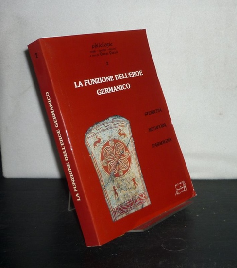 La funzione dell'eroe germanico. Storicità, metafora, paradigma. Atti del convegno internazionale di studio, Roma 6-8 maggio 1993. A cura di Teresa Pàroli. (= Philologia. Saggi, ricerche, edizioni, no. 2). Roma: Il calamo 1995. XIII, 376 Seiten. Mit vereinzelten Illustrationen. Gr. 8° (22,5-25 cm). Illustrierte Orig.-Broschur. [Softcover / Paperback]. With editor's dedication on an enclosed paper. - Cover partly a bit creased. - Good to very good copy. ISBN: 8886148135.