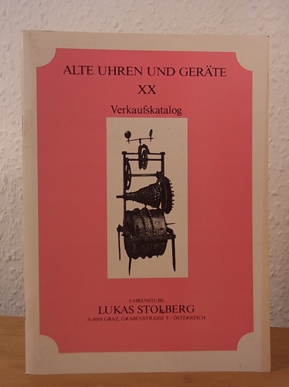 Alte Uhren und Geräte XX. Verkaufskatalog Graz: Uhrenstube Lukas Stolberg. 20,5 cm ; kart. Ohne Jahr. Softcover, 31 Seiten mit sehr zahlreichen Fotos. Äußerlich etwas angedunkelt. pw237.