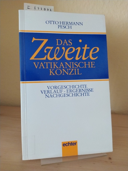 Das Zweite Vatikanische Konzil. Vorgeschichte - Verlauf - Ergebnisse - Nachgeschichte. Von Otto-Hermann Pesch. Würzburg: Echter Verlag 1993. 443, (1) Seiten. 8° (17,5-22,5 cm). Orig.-Broschur. [Softcover / Paperback]. Ehemaliges Bibliotheksexemplar mit Rückensignatur, Inventarnummern und Stempeln auf Vorsatz- und Vortitelblatt. - Einband und Fußschnitt leicht berieben. Ecken und Kanten minimal bestoßen. Kopfschnitt leicht angestaubt. - Insgesamt sauberes und gut erhaltenes Exemplar. ISBN: 3786783934.