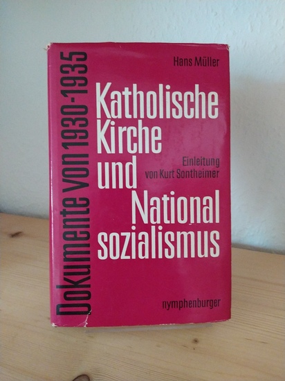 Katholische Kirche und Nationalsozialismus. Dokumente 1930 - 1935. [Von Hans Müller]. Mit einer Einleitung von Kurt Sontheimer. München: Nymphenburger Verlagshandlung 1963. XXV, 432 Seiten. 8° (17,5-22,5 cm). Orig.-Leinenband mit Orig.-Schutzumschlag. [Hardcover / fest gebunden]. Schutzumschlag etwas berieben und mit kleineren Randläsuren. - Kopfschnitt etwas angestaubt. Handschriftlicher Besitzvermerk in blauem Kugelschreiber auf dem Titelblatt. - Insgesamt sauberes und gut erhaltenes Exemplar der fest gebundenen Originalausgabe.