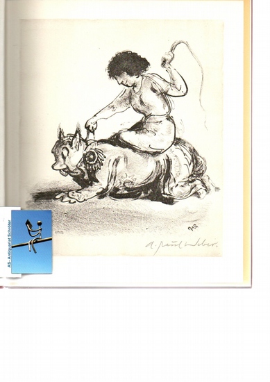 Kritischer Kalender 1979. [mit signierter Originalgraphik]. 27 Lithographien von A. Paul Weber. 21.Jahrgang. Bruckmann Verlag, München, 1978. ca 60nn Seiten, ca 23x19cm, illustrierter OPappband, Kalendarium. Durchgehend mit Abbildungen. Vorliegend ein Exemplar der Vorzugsausgabe mit einer auf dem Vorsatz montierten Original-Lithographie. Eine Ecke der bedruckten Seiten leicht gewellt (Feuchtigkeit?). Gutes Exemplar. Fine copy. With an original lithograph, signed by Weber. <**UTFAQ**>Actually it is not possible, sending books to the USA. Aktuell können keine Bücher in die USA versandt werden.**UTFAQ**>.