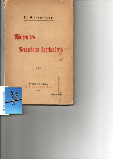Märchen des Neunzehnten Jahrhunderts. E. Piersons Verlag, Dresden/Leipzig, 1894. 174(1) Seiten, (quer 13,5x17,5cm), OBroschur. Kleiner Einriß am oberen Kapital, Deckel mit Flecken. Die Textseiten am Längsrand unbeschnitten. Gutes Exemplar. Good copy. <**UTFAQ**>Actually it is not possible, sending books to the USA. Aktuell können keine Bücher in die USA versandt werden.**UTFAQ**>.