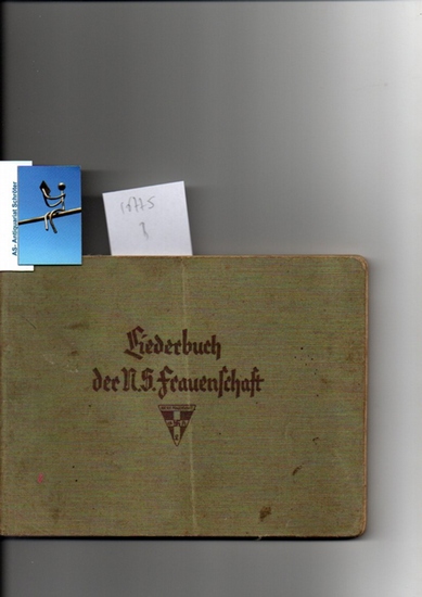 Liederbuch der N.S.-Frauenschaft. Zwei- und dreistimmige Vokalsätze, Lautensätze und Geigensätze. Herausgegeben im Auftrage der Reichsführung der N.S.-Frauenschaft. Heinrichshofens Verlag, Magdeburg, o.J. XI,118(4) Seiten, ca. 14x18,5cm, OLeinen (quer). Mit Noten. Der Vorderdeckel einmal längst komplett geknickt. Das Papier mit Flecken, eine Seite mit Randeinriss. Gutes Exemplar. Good copy. <**UTFAQ**>Actually it is not possible, sending books to the USA. Aktuell können keine Bücher in die USA versandt werden.**UTFAQ**>.