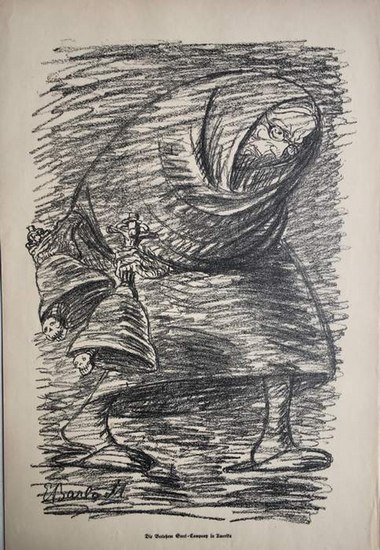 KRIEGSZEIT. Künstlerflugblätter. Nr. 49 vom 28. Juli 1915. Mit Original-Lithographien von ERNST BARLACH: Die Betlehem Steel-Company. DABEI: VALÉR FERENCZY: Exzellenz von Linsingen; LUDWIG DANZIGER: Verwundete im Quartier; CARL O. PETERSEN: Das Märchen vom Vogel Grey. Alle Lithographien im Stein signiert. Berlin: Paul Cassirer. 1915. 48 x 32 cm. 2 Blatt, auf besserem weißen Papier. Unter Passepartout. Söhn 13449-1-4. - Sehr gut erhalten.
