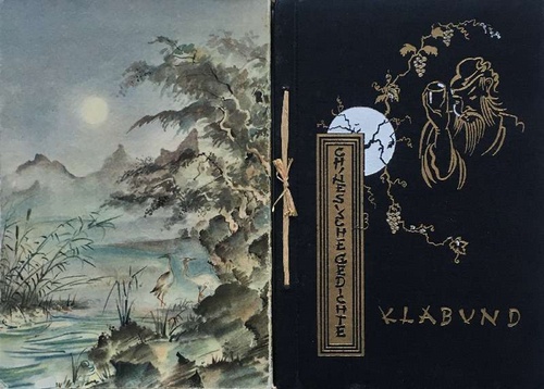 Chinesische Gedichte. Nachdichtungen von Klabund. Gesamt-Ausgabe. 11. - 16. Auflage. Wien: Phaidon. (1933). Mit 8 ganzs. Farbillustrationen von Georg Mayer-Marton. 130(1) S. Flexibler OLeinenband mit goldgepr. Rückentitel. Geprägte Illustration in Gold und Weiß auf Vorderdeckel, Blockbuchheftung. In farbig ill. OSchuber. Sehr schönes Exemplar.