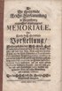 An die hochlöbliche Reichs-Versammlung zu Regensburg eingerichtes abgetrungenes Memoriale Oder: Kurtze doch gründliche vorstellung / Welchergestalten das Hoch-Fürstl. hauß Brandenburg-Onolzbach durch die von Kayserl. Majestät und dem Heil. Röm. Reich nach dem Frieden-Schluß mit der Cron Schweden ad Executionem Pacis verordnete Reichs-Deputation, occasione eines vor das Hoch-Stifft und Domb-Probstey zu Bamberg Anno 1651 emanirten / an sich wider das Instrumentum Pacis lauffenden- und mit vielen andern Nullitaeten beladenen Spruchs / nun erst wolle gravirt und aufs empfindlichste laedirt werden / mit ziemender Bitte / um dessen Abwendung und rechtliche Assistenz. Von der Hoch-Fürstlich. Br. Onolzbachischen Gesandschafft übergeben ,, 1716. 11 S., gestochene Initiale, gest. Schlusvignette Rückenbroschur der Zeit, 4° Gut erhaltenes Exemplar