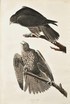 Labrador Falcon, Plate CXCVI [from: Birds of America]. London, R. Hawell, 1826-1838. Hand-aquatinted copper-plate engraving, printed on J. Whatman Turkey Mill watermarked paper dated 1835. 955 x 640 mm, sumptuously framed and glazed. The famous depiction of a Falcon from the "Birds of America" by the world-famous French-American naturalist and painter John James Audubon (1785-1851), which was purchased at a Christie's auction for $11.5 million in March 2000, setting a world record for the most expensive book ever sold (surpassed only by the 1640 "Psalm Bay Book", sold for $14.2 million in November 2013). Very good colour, with the back of the upper bird a subtle charcoal, beaks and feet of both birds a pale blue wash, slight limited spotting to the background, slight cast on the edge, and minor thumbing, three edges of the sheet gilt from when it was bound.