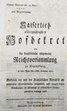 Kaiserlich-allergnädigstes Hofdekret an die hochlöbliche allgemeine Reichsversammlung zu Regensburg, de dato Wien den 21sten Hornung 1801. Wodurch der mit der Französischen Republik abgeschlossene Friedenstractat mitgetheilt, und wegen dessen Ratification ein ... Reichsgutachten verlangt wird. Dictatum Ratisbonae die 25. Febr. 1801. per Moguntinum. Regensburg, Konrad Neubauer, 1801. 4°. [6] Bl., 29 S., [2] Bl. Pbd. d. Zt. Historisch interessantes Dokument zu dem von Napoleon Bonaparte und Moreau nach ihrem Vorstoß nach Wien gegenüber dem Deutschen Reich erzwungenen Frieden von Lünewill 1801. Das vorliegende Exemplar enthält außer dem Dekret auch das zur Ratifizierung angeforderte Gutachten der Reichsversammlung in Regensburg. - Einband angestaubt und etwas fleckig, stellenweise leicht braunfleckig.