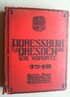 Adreßbuch für Dresden und Vororte 1918. Bearb. und hg. von der Dr. Gützschen Stiftung. Bd. I: Allgemeiner Teil, Selbständige Einwohner von Dresden, Behörden. 2 Tle. in 1 Bd. Dresden (1918). 4°. XXII, S. 17-48, 1 Bl., S. 13-895, 1 Bl., 156 (statt 174) S. OHlwd. (vorderes Gelenk tls. beschädigt, berieben). Ohne die separaten Pläne. - Die zu Beginn fehlenden Seiten enthielten u. a. Allgemeine Nachricht von der Stadt und deren Einrichtungen, der Post- und Fernsprecheinrichtungen, der Sächsisch-Böhmischen Dampfschiffahrt, der Straßenbahn und Automobildroschken sowie die Übersicht zum Königshaus, der Ehrenbürger sowie die ersten 10 S. des Einwohnerverzeichnisses. - Gutes, sauberes Exemplar.