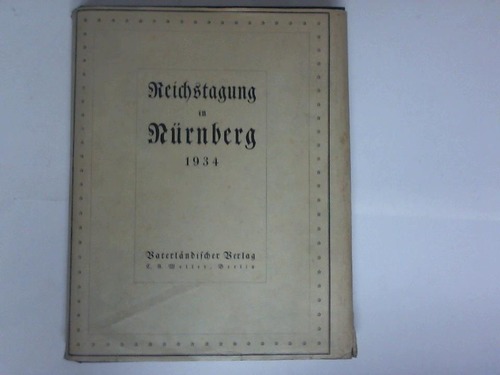 Reichtagung in Nürnberg 1934 Bln., Weller, 1934. 410 S. mit zahlr. Bildern, original Leinen mit Schutzumschlag, Quart (Schutzumschlag mit kl. Lasuren/NaV./Ex Libris)---- gutes Exemplar -.