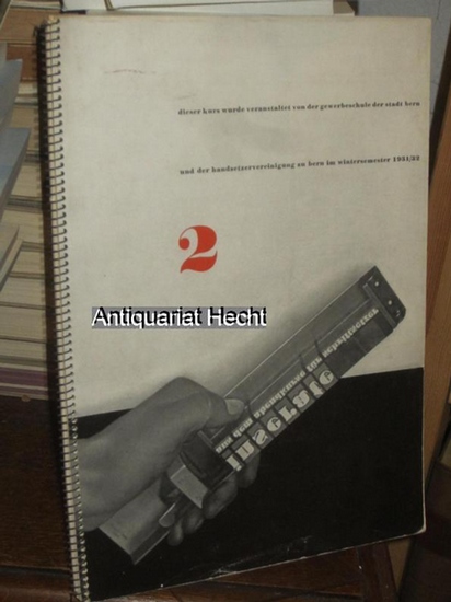 Inserate aus den praktischen Abendkursen für Schriftsetzergehilfen. Abgehalten an der Gewerbeschule der Stadt Bern, Abteilung Buchdruckerfachschule Bern. Durchgeführt im Winterhalbjahr 1931/32. Bern: Gewerbeschule der Stadt Bern, 1932. 6 S., 30 Blatt Abbildungen, meist 2-farbig; 4°, OKart. mit Spiralbindung. Die vorliegende Mappe enthält ca. 60 Inserate sowie Reklamesätze in verbindung mit Linolschnitt und 4 Bildklischees aus dem Skizzierkurs. Sehr guter Zustand. /lager 0126.