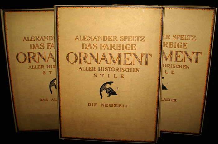 Das farbige Element aller historischen Stile. Das Altertum / Das Mittelalter /Die Neuzeit. 3 Mappen und 3 Texthefte. Leipzig, Koehlers Antiquarium (1914 - 1923). "2° und 4°. 43; 47; 61 S. Text mit einigen Textill. Mit 3 farb. Titeln und 180 montierten Farbtafeln, Texthefte OBrosch., Orig.-Hln.-Mappen. Sehr guter Zustand." "Arntzen-Rainwater 74: ""Still useful"". - Mosaike, Säulen, Wandmalerei, Skulpturen, Miniaturen, Waffen, Fußböden, Buchschmuck, Majolika, Porzellan, Tapeten u.a.m.".