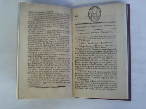 Bullettino delle leggi della Repubblica Mailand, 1848. 8 Folgen mit 128 Seiten, moderner Leineneinband mit goldgeprägtem Rückentitel---- Folge 2, 3 und 4 in Originalausgabe. Folge 1, 5 - 8 in Kopie. la rivoluzione italiana 1848 -.