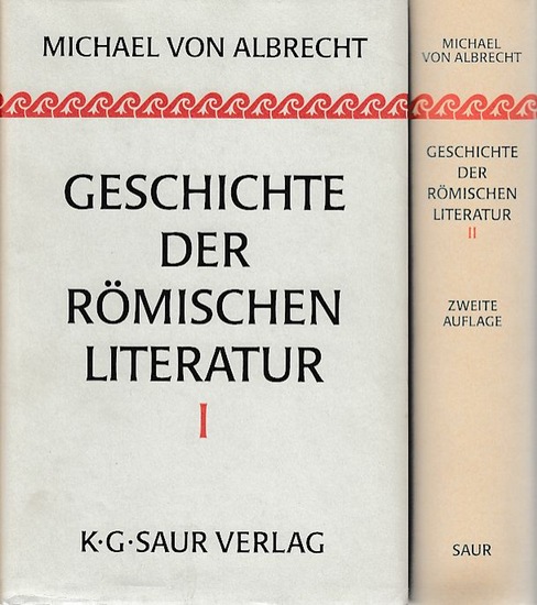 Geschichte der römischen Literatur [2 Bde.]. Von Andronicus bis Boethius mit Berücksichtigung ihrer Bedeutung für die Neuzeit. 2., verb. und erw. Aufl. München: Saur, 1994. zus. 1466 S. Originalleinen mit Schutzumschlag. Sehr gutes Exemplar. - Vom dritten Jhd. v.Chr. bis in das sechste nachchristliche Jhd. -- Inhalt: Literatur und Literaturgeschichte -- Entwicklungsbedingungen der römischen Literatur -- Literatur der republikanischen Zeit: Überblick - Poesie - Prosa -- Literatur der augusteischen Zeit: Überblick - Poesie - Prosa -- Literatur der frühen Kaiserzeit: Überblick - Poesie - Prosa -- Literatur der mittleren und späten Kaiserzeit: Überblick - Poesie - Prosa -- Überlieferungsbedingungen der römischen Literatur -- Namen- und Sachregister -- Zeittafel. ISBN 3598111983.