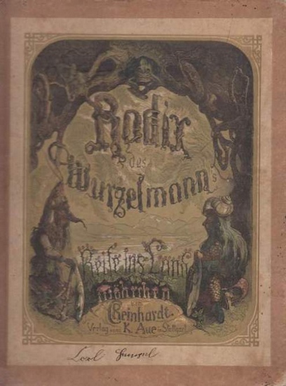 Radix des Wurzelmanns Reise ins Land Mährchen. Stuttgart, Verlag K. Aue ohne Jahr., ca. 1875. Mit teils kolorierten Abbildungen., 76 Seiten., 4°. rote OHalbleinwand mit montiertem Deckelbild,. Einband stärker berieben und beschabt sowie etwas fleckig, Buchkanten bestoßen. Papier altersbedingt gilb und teils etwas fleckig, Buchgelenk leicht gelockert. Namenszug von alter Hand auf vorderem Buchdeckel, insgesamt gutes und seltenes Exemplar.
