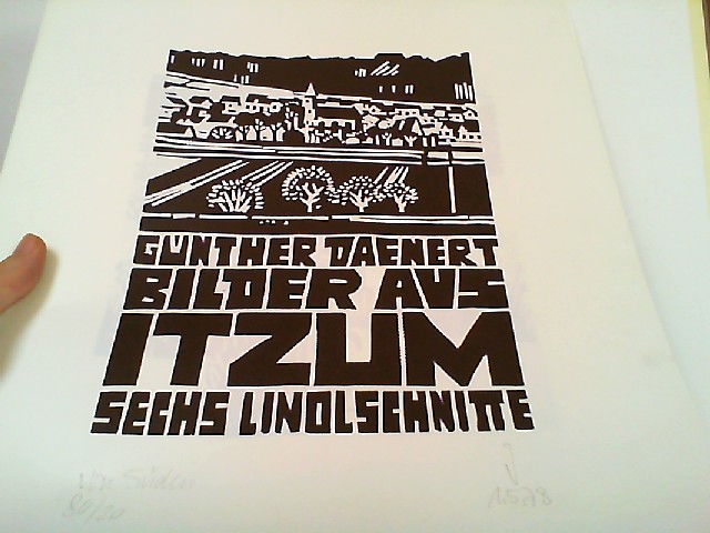 Bilder aus Itzum - Sechs Linolschnitten. Selbstverlag, 1978. 6 großformatige nummerierte Linolschnitte mit einer handschriftlichen Beschriftung ! Limmitiert auf 80 Exemplare - die vorliegenden Schnitte tragen die Nummer 20 aus 80 !! Äußerst selten ! SH57.3.