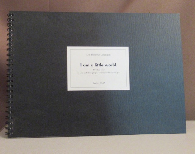 I am a little World. Dritter Teil einer autobiographischen Methodologie. Berlin, Eigenverlag der Künstlerin 2005. 2005. quer-4°, 30 S., 1 Bl. mit einigen Abbildungen (eine davon aufklappbar), Orig.-Karton mit Spiralbindung. Erste Ausgabe.- Auf Titel eigenhändige Widmung der Künstlerin, datiert 14.VIII.05.- In kleiner Auflage erschienen.
