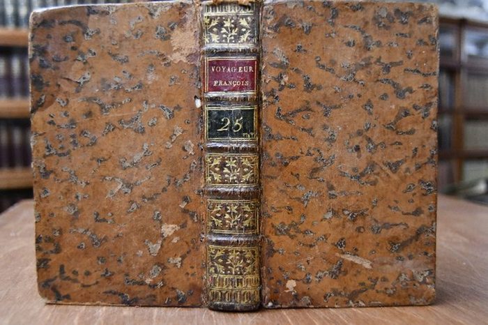 Le Voyageur Francois ou La Connoissance de l`ancien et du nouveau Monde 25. Band (apart). Paris, Cellot, 1782. 467 S. 17 x 11 cm, Leder der Zeit auf 5 Bünden mit 2 Rückenschilden, Rückenvergoldung und umlaufendem Rotschnitt. Einband berieben und bestoßen. Immer wieder etwas wasserrandig. Enthält: Geneve, La Savoie, Le Piemont, Le Milanois, Parme et Plaisance, Modene et Mantoue, Venise.