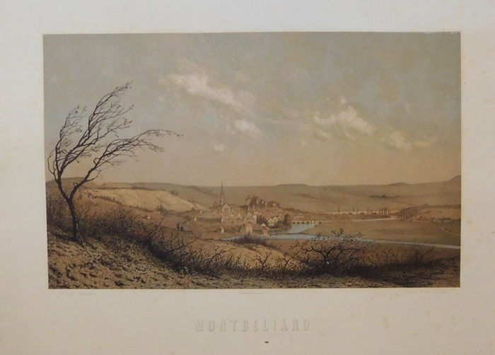 Gesamtansicht. Berlin, Farblithographie von und nach Eugen Krüger bei W. Korn & Co., 1870. 27x44 cm - auf großen Unterlagskarton mit Beschriftung altmontiert (dieser etwas fleckig und angestaubt) *Frankreich / France / Franche-Comté.