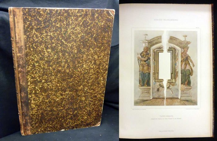 Schloß Wilhelmsburg bei Schmalkalden. Aufgenommen, dargestellt u. kunstgeschichtlich geschildert. Unter Beigabe geschichtlicher Forschungen von O. Gerland. Berlin, Schuster & Bufleb 1895. Imp.Fol. 4 Bll., 26 S. Text u. 34 (9 farb.) Taf. u. 62 Textabb. HLdrBd.d.Zt., Rücken u. Kanten berieben, Titel mit altem Schulstemp., ansonsten gut erhalten. Mit Ansichten u. Innenansichten nach Zeichnungen u. Photographien, Grundrissen, Querschnitten u. Details.