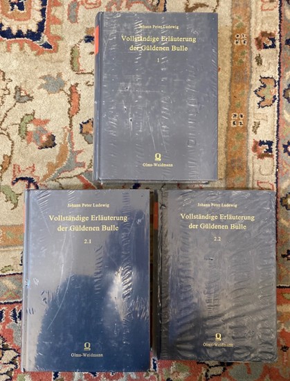 Vollständige Erläuterung der Güldenen Bulle. Drei (3) Bände (komplett). Mit einer Einleitung herausgegeben von H. Hattenhauser. Nachdruck der Ausgabe Frankfurt Leipzig und Trier, Hechtel 1752. Hildesheim, Olms-Weidmann 2005. XXIV, 2541 Seiten. Leinen. Sehr gut erhaltene, noch originalverschweißte Bände! 9783487127712.