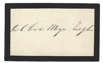 Billett mit eigenh. U. von Meyers Frau (?Dr. C. Frd. Meyer-Ziegler?). O. O. u. D. 1 S. Visitkartenformat. Schwarzer Rand.