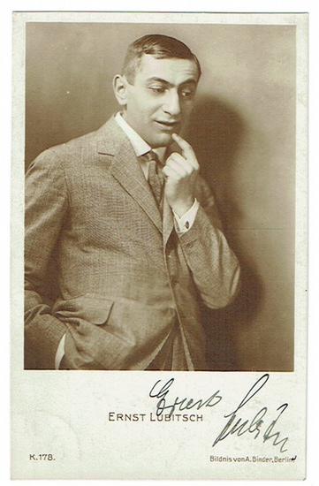 Portraitpostkarte mit eigenh. Unterschrift. Berlin, o. J. 85 : 135 mm. Portraitphotographie mit eigenh. Unterschrift: ?Gruß Lubitsch?. Brustbild in gespielter nachdenklicher Pose.Ernst Lubitsch war ein Pionier des Tonfilms, der in den USA 1927 mit dem Film "The Jazz Singer" startet. In Deutschland kommt am 16. Januar 1929 den Film "Ich küsse ihre Hand, Madame" in die Kinos. Darin sieht und hört man Marlene Dietrich und Richard Tauber. Auch der Filmregisseur Ernst Lubitsch gehörte zu den Pionieren des Tonfilms mit seinem Hollywoodfilm "The Love Parade", über den er .Bei einem Interview vom 12. November 1932, aufgenommen im Berliner Hotel "Adlon", sagte Lubitsch: ?Es ist der größte Fortschritt, den jeder Regisseur begrüßen muss. Sehen Sie: Der stumme Film war keine völlig in sich abgeschlossene Kunstgattung. Er musste Filmtitel zu Hilfe nehmen, wenn er eine Geschichte erzählen wollte. Dieser Titel war ein Fremdkörper, den der Tonfilm ausmerzte. Und schon diese Tatsache allein genügt, um die Existenz des Tonfilms zu rechtfertigen.?Ernst Lubitsch hatte seine ersten großen Erfolge als Regisseur in Deutschland gefeiert und war in den 1920er Jahren nach Hollywood gewechselt. Dort machte er sich vor allem einen Namen als Regisseur von kultivierten und eleganten ?Salonkomödien? ? deren besonderen Charme beschrieben Filmkritiker später als den Lubitsch Touch. Kurz vor seinem Tod erhielt Lubitsch einen Ehrenoscar für sein Lebenswerk.