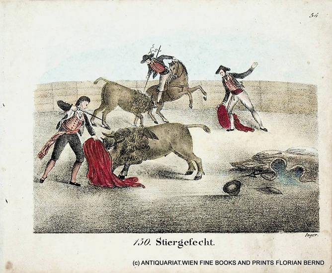SPAIN, Bullfighting, view antique print ca. 1830 ca.1830. view / Ansicht, original Lithographie / lithograph; handkoloriert, Blatt / sheet ca.: 16 x 19,5 cm. Antique Print, antique print, antike Grafik.