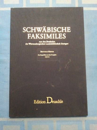 Das Doppelblatt aus dem Evangeliar HB II 46 der Württembergischen Landesbibliothek Stuttgart. (Schwäbische Faksimiles) Göppingen Ed Deuschle 1986. 4to. 3 Bll., 1 faks. Doppelblatt. 35*24 cm. OLeinenkassette. Einband leicht berieben, sosnt guter Zustand mit lediglich leichten Gebrauchsspuren. G17-.