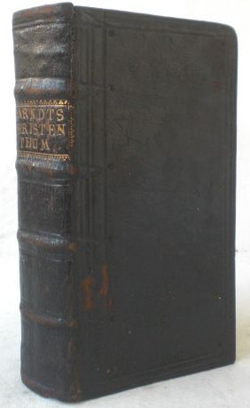 Des hocherleuchteten Sel. Johann Arnds, General-Superintendentens des Fürstenthums Lüneburg, Sechs geistreiche Bücher vom Wahren Christenthum, (...). Nach den besten und vollständigsten Editionen, mit fünf unterschiedenen Registern, und einer erbaulichen Vorrede; samt dem Lebenslauf des sel. Autoris, in diesen bequemen Format von neuem heraus gegeben / Des hocherleuchteten Sel. Johann Arnds (...) Viel-vermehrtes geistliches Paradis Gärtlein (...). Wozu auch des sel. Christian Hohgenburgs über sel. Johann Arnds sechs Bücher Vom wahren Christenthum abgefassete Gebäter in gehöriger Ordnung gesetzet worden. Nebst den wunderbaren Geschichten von diesem Büchlein; samt einem vierfachen Register (...). Lemgo: Henrich Wilh. Meyer. 1712-1713. Gest. Frontispiz, 15 Bll., 494 S., 25 Bll., 8 Bll., 315(1) S., 10 Bll. Kl.8° (16,5 x 9,5 cm). Spätere Auflagen der beiden erstmals im frühen 17. Jahrhundert (1605 u. 1612) erschienenen protestantischen Erbauungsbücher. Mit 1 gest., allegorischen Frontispiz von F. W. Brandshagen zum 1. Titel. 2 Teile bzw. Titel in 1 Band. Einband etwas bestoßen und beschabt; Rücken mit winziger Fehlstelle am unteren Kapital; vorderes Rückengelenk am oberen Kapital mit kleiner Anplatzung; Vorsätze etwas stockfleckig und gebräunt sowie leicht angerändert; Papier teils leicht gebräunt; teils leicht stockfleckig und vereinzelt leicht braunfleckig; vereinzelt winzige Knickspuren in den Ecken; älterer Besitzvermek und älterer Kaufvermerk auf den Vordervorsätzen. Die beiden Titelblätter in Rot und Schwarz gedruckt. Im ersten Werk mit 3 Buntpapierblattweisern. Fast durchgehend zweispaltiger Druck. 2 bedeutende protestantische Erbauungsbücher in 1 Band - die beiden Werke wurden wohl vom Drucker und Verleger H. W. Meyer in Lemgo zusammen vertrieben.
