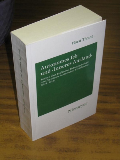 Autonomes Ich und Inneres Ausland : Studien über Realismus, Tiefenpsychologie und Psychiatrie in deutschen Erzähltexten 1848 - 1914. (= Hermaea Germanistische Forschungen Neue Folge Band 70). Tübingen, Max Niemeyer, 1993. Erste Ausgabe. Gr.-8°. Weiß-grüne Original-Broschur. VII, 756 Seiten. Sehr gut erhalten, wohl ungelesen. Inhaltsverzeichnis: II) Das Irresein im Zeitalter des Realismus. Die Erzählliteratur auf dem Weg zur dynamischen Psychiatrie. III) Zur literarischen Rezeption der frühen dynamischen Psychiatrie. IV) Dissoziation und Kohärenz des Ich in der Erzählliteratur der Jahrhundertwende. 1) Experimentalpsychologie, Empiriokritizismus und die Krise der realistischen Erzählkunst. 2) Lust und Kultur bei Eduard von Keyserling. 3) Ethik und Ich-Kohärenz in Schnitzlers Erzählungen. Verzeichnis der zitierten Literatur. Namenregister. FL3229.