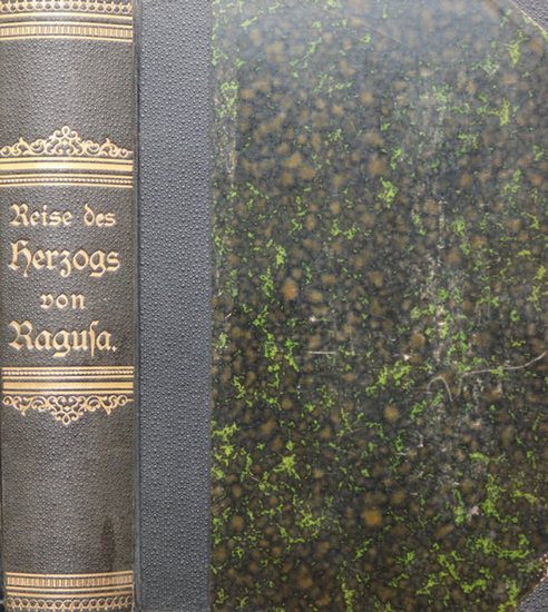 Reise des Marschalls Herzogs von Ragusa. Erster Band / Zweiter Band (2 Bände in einem Band). Stuttgart, Hallberger, 1837. Halbleinen, ca. 700 Seiten. Bindung späterer Zeit. Papier innen vereinzelt leicht fleckig, Geruch etwas unfrisch, sonst gut erhalten. Altersentsprechend guter Zustand. 1. Aufl. Frakturschrift.