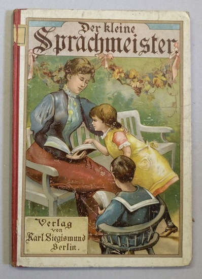 Der kleine Sprachmeister. Ein Lehr- und Bilderbuch. Ein Sprach- und Leselernbuch für Gehörlose du Kinder mit Sprechstörungen. Die Laute werden mit Strich-Zeichen dargestellt, die einzelnen Buchstaben in Sütterlin, Schreibschrift und Fraktur dargestellt. Siegismund, Berlin, 1897. Kl.-4°, 64 S., mit zahlreichen farblithographierten Abbildungen und 5 photographischen Abbildungen, farbig illustrierter Original-Halbleinwandeinband (Einband berieben, etwas bestoßen, Rückdeckel fleckig und mit oberflächlichen. Beschädigungen und fleckig. Die farbige Titelvignette wurde herausgeschnitten, auf dem Titelblatt der Stempel einer Gehörlosenschule). (OBM).