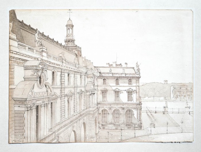 Louvre, Paris, fine architectural drawing - Paisant, Paul Charles (1843-1909):