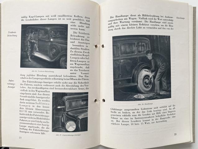 Richtiges Licht am Auto und Motorrad durch Osram-Auto-Lampen. Mit zahlr. Abbildungen. Berlin, Osram, ca. 1936. 37 Seiten. orig.-Broschur (gelocht). Sehr seltener Firmenprospekt. - Laut KVK in keiner Bibliothek. Schr-Fl-re.