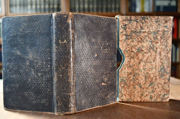 Würtembergisches Gesangbuch zum Gebrauch für Kirchen und Schulen, von dem Königlichen Synodus nach dem Bedürfniß der gegenwärtigen Zeit eingerichtet. Stuttgart, Cotta, 1823. 4 Bll., 520, 128 S., 4 Bll. 17 x 11 cm, Leder mit Stegrandvergoldung und umlaufenden Goldschnitt im OSchuber. Einband berieben und bestoßen. Gelegentlich wenig fleckig. Auf den letzten Seiten handschriftliche Familiennotizen von Louise Friderike Linck verheiratet mit Georg Wilhelm Geiger. Metzger 1823-501.