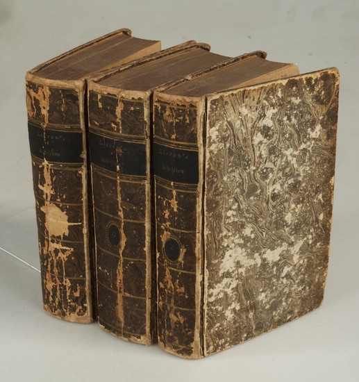 Schriften 3 Bände. Hrsg. von Carl Müchler. Mit je einer Titelvignette und 2 Frontispizes. Berlin, Himburgsche Buchhandlung, 1806. LX, 328, 570, 507 S.. Pappbände der Zeit. Kl.-8vo. Einbände stark berieben, Ecken bestoßen. Titel und FRontispiz des 2. Bandes etwas wasserfleckig. Etwas stockfleckig, wenig Bleistift-Anstreichungen. Titel mit kleinem Namensstempel, sonst innen gut.