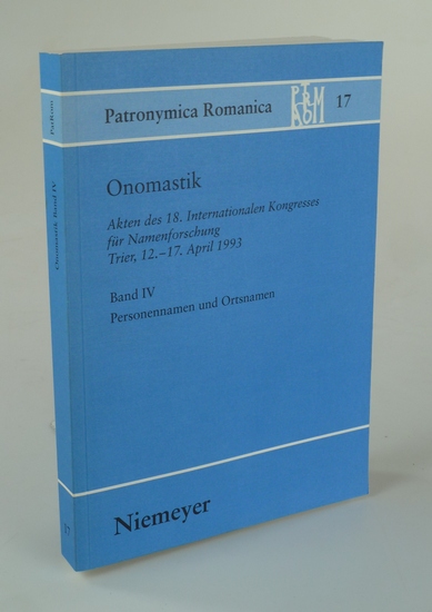 Onomastik Bd. IV: Personennamen und Ortsnamen. Akten des 18. Internationalen Kongresses für Namenforschung trier, 12.-17. April 1993. Tübingen, Niemeyer, 1999. VIII, 330 S.. okart. Sehr gutes Exemplar.