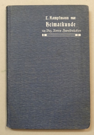 Heimatkunde des Bezirksamts Zweibrücken, eine erdkundlich-geschichtliche Beschreibung. Hermann Kayser, Kaiserslautern, 1912. 8°, VII, 250 S., mit 1 Porträt von Prinzregent Luitpold als Frontispiz, 3 Tabellen, Abbildungen auf Tafeln und 1 Faltkarte, Original-Leinwandeinband (etwas berieben, Rückdeckel etwas fleckig, die ersten Blätter mit. schmalem Wasserrand seitlich, 2 kleine private Besitzeinträge, Karte etwas beschädigt) (GLRE).