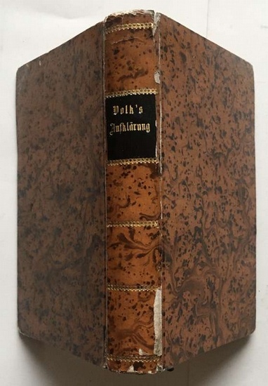 Ist es rathsam, die niederen Volksklassen aufzuklären? und: Wie muss diese Aufklärung sein? Vermehrte Auflage. Leipzig,: Heinrich Büschler. 1811. Mit 1 Statistik Tabelle, gefaltet. XVI, 287(1) S. Aus fünfte Vorlesung: "Unerlässliche Pflicht der Staatsoberen, für zweckmäßige Bildung des Volks zu sorgen...Man hält sie jetzt wieder für überflüssig: aber sie ist Staatspflicht..." DLL IV, Sp. 605/08: Ewald (1747-1822) ... bemühte sich um pädagogische Reformen... E. war mit Goethe und Max von Schenkendorf befreundet und gehörte dem Kreis der Erweckungsbewegung um Brauer und Jung-Stilling an. Verfasser von zahlreichen theologischen und pädagogischen Schriften und Lehrbüchern. - Am unteren Rand des Längsschnittes Tintenfleckig, nur vereinzelt und minimal auf der Textseite sichtbar.