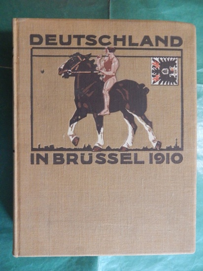 Deutschland in Brüssel 1910 - Die Deutsche Abteilung der Weltausstellung Köln, DuMont, Schauberg, 1910. Leinen, mit Deckelprägung, gr. DinA 4, größeres Format, 439 Seiten, viele sw-Photos, Kupfertiefdruck, auffaltbarer großer Plan der Maschinenhalle u.a zum umfangreichen Text; 27 Seiten Anhang mit Verzeichnis der auf der Brüsseler Welt-Ausstellung 1910 an die deutschen Aussteller verteilten Auszeichnungen; Einband mit geringen Gebrauchsspuren, flächig fleckig, leicht berieben und obere Ecke bestoßen, Schnitt gering staub-fleckig, Schnitt und Seiten papierbedingt gebräunt, Falz zwischen den Vorsatzblättern unten leicht eingerissen, Pergamentpapier vor dem Titelblatt knittrig, insgesamt gut erhalten / insgesamt guter Zustand. Auf Grund des vom Reichskommissar und vom Präsidenten des Deutschen Komitees zur Verfügung gestellten Materials sowie mit Unterstützung zahlreicher Mitarbeiter herausgegeben von G. Stoffers, Leiter des Literarischen Bureaus des Reichskommissars; Inhalt: Brüssel; Organisation und Geschichte der Ausstellung, insbesondere der Deutschen Abteilung; Die Bauten der Deutschen Abteilung; Die Gartenanlagen; Raumkunst und Kunstgewerbe; Die Deutsche Unterrichts-Ausstellung; Die Photographie; Elektrizität; Die Industriehalle; Ausstellung Deutscher Ingenieur-Werke; Die Technischen Anlagen und der Betrieb; Maschinenabteilung; Die Eisenbahnhalle; Deutsche Aussteller in der internationalen Abteilung; Die Kunst in der Deutschen Abteilung; Auszeichnungen der Deutschen Aussteller in Brüssel 1910; wegen des hohen Gewichts Versand in Länder außerhalb der EU nur auf Anfrage und Portoerhöhung möglich / higher shipping-costs outside EU.
