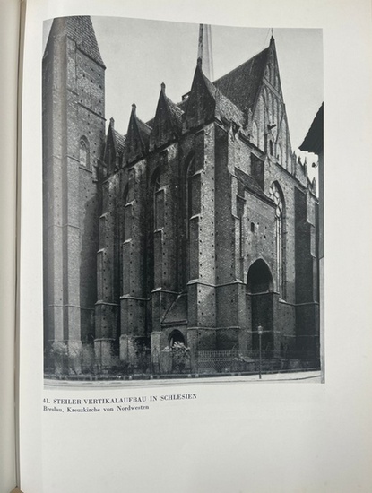 Norddeutsche Backsteindome. Berlin: Deutscher Kunstverlag . 1930. 128 photograph. Bilder auf Tafelseiten von A. Renger-Patzsch. 48, 128 S. 4to. Orig.-Leinenband mit braungepr. Deckelillustration. Erste Ausgabe. - Heidtmann 13153. - Vorderer Innendeckel etwas fleckig. Vorderer Vorsatz fehlt. Unsere Photos zeigen Breslau, Kreuzkirche ; Danzig, Netz-u. Zellengewölbe und der Turm der Marienkirche; Prenzlau, Marienkirche; Stralsund, Stern-u. Netzgewölbe.