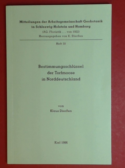 Bestimmungsschlüssel der Torfmoose in Norddeutschland. Heft 50 aus der Reihe "Mitteilungen der Arbeitsgemeinschaft Geobotanik in Schleswig-Holstein und Hamburg". Kiel: Arbeitsgemeinschaft Geobotanik in Schleswig-Holstein und Hamburg, 1996. 86 Seiten mit zahlreichen s/w Abbildungen. Original-Broschur. Gutes Exemplar mit nur leichten Gebrauchsspuren. Textsauber und aus einem Nichtraucherhaushalt. Dieses Exemplar stammt aus der Bibliothek von Dr. Volker Hellmann, Dozent am Fachbereich Biologie der Universität Konstanz.