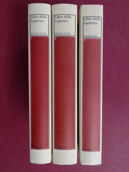 Libro della Sapienza (complete in 3 volumes). Testo, traduzione, introduzione e commento a cura di Giuseppe Scarpat. Volumes 1, 3 and 6 from series "Biblica. Testi e studi". Brescia: Paideia, 1989-1999. 478, 546, 461 Seiten / pages. Original-Pappbände. Original hardcovers. Clean books in good condition. Books from a non smoking environment.