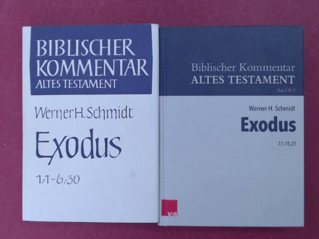 Exodus (vollständig in 2 Bänden). Teilband I: Exodus 1 - 6. Teilband 2: Exodus 7,1 - 15,21. Band II aus der Reihe "Biblischer Kommentar Altes Testament (BKAT)". Neukirchen-Vluyn: Neukirchener Verlag. , Göttingen: Vandenhoeck & Ruprecht, 1988, 2019. VI; VIII, 666 Seiten. Original-Pappband., Original-Leinenband mit Schutzumschlag. Gutes Exemplar mit nur leichten Gebrauchsspuren. Textsauber und aus einem Nichtraucherhaushalt. Mit Namenssignatur auf den Vorsatzblätttern.