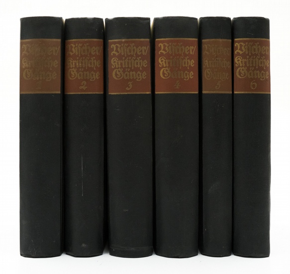 Kritische Gänge. - [6 Bände]. - Berlin; Wien:, Meyer und Jessen, 1920-1922. 6 Bände:. 6 Bände. - Hg. von Robert Vischer. - Zweite, vermehrte Auflage. - Provenienz 1.: Dahl [19]52 (Namenszug auf dem vorderen fliegenden Vorsatzblatt; nicht identifiziert). - Provenienz 2.: Joachim Kersten (Rechtsanwalt und Literaturvermittler, 1946-2023; Nachlassexlibris auf dem vorderen Spiegel; datierter Namenszug in zartem Bleistift auf dem vorderen fliegenden Vorsatzblatt des ersten Bandes). - Etwas berieben und bestoßen; etwas lichtrandig; gute Exemplare.