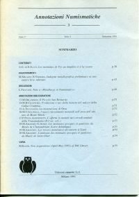 Annotazioni Numismatiche 3. Anno 1, Serie 1, Settembre 1991.